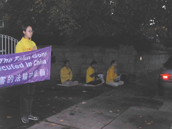 【明慧网2001年11月7日】法轮功发源地长春近日迫害急速加剧,死亡案例频频传出。11月5日晚120名多伦多大法弟子汇集中国驻多伦多总领事馆前举行烛光悼念行动,并强烈谴责江泽民政权以及以罗干为首的“6·10办公室”对无辜的大陆法轮功学员一再升级的残酷迫害。