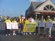 下午我们在大学里向教授和学生们讲诉中国迫害法轮功学员的真相。他们都震动了。一位教授还请求我们把我们师父在其它各国讲法的书籍,放在学校的图书馆,供给教授和学生们阅读。他还表示要帮我们联系其它公共场所揭露邪恶。