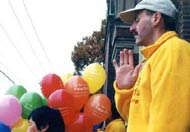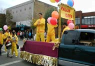 一路上我们向三三两两的行人和路边的商店递送SOS的传单,简短地向他们介绍发生在中国的残酷迫害。有时我们穿过宽宽的马路把传单送给对面驻足观望的人们,有的弟子向路人不停地招着手。