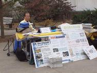 从学校出来,我又赶到该镇的报社(Sunny South News)。该报社共有3个工作人员(包括记者在内),都非常善良,我去时,记者尚未从外面回来,其他两个工作人员很有兴趣地听我讲法轮大法及其受迫害的情况,期间几个电话打进来都被她们截住了,她们告诉打电话的人半个小时以后再打来,现在没空。每个人都在急切地听我往下讲,法轮大法真善忍的美好令她们神往。其中一人说她的女儿就在该镇中学读书,是十年级。她问我是给哪个年纪的学生介绍法轮大法的,我说是给十一年级的学生,她感到非常遗憾,她说她多么希望她的女儿能够听到我的介绍,她希望她的女儿能够按真善忍去做人。当我讲到中国当权者是如何残害法轮功学员时,她们对法轮功学员所遭受的迫害深表同情,对中国当权者的残忍深感震惊和愤慨,表示她们要尽力帮助受迫害的法轮功学员。