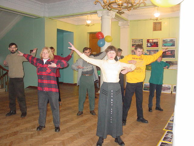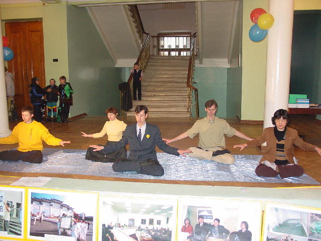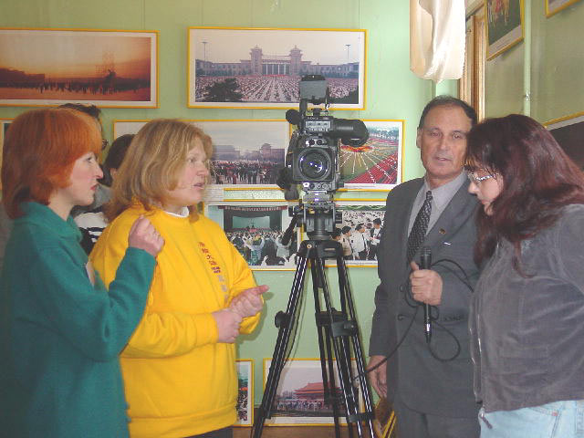 赛班大法弟子在正法之路图片展上洪法