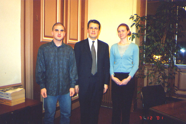 当法国学员向议员先生介绍说法轮功是建立在“真善忍”普遍原则的基础上时,他被深深地打动了。在会谈中,他用手指指着法轮功学员在天安门打开横幅的照片上的‘忍’字表示很重要。他感谢学员们的大忍之心,同时他在整个会谈过程中也表现出耐心。告别的时候,他很亲切地和两位学员合影,尽管时间已经很晚了,而且还有很多人等着接见。做为结束语,他说:“我想我应该做到用耐心倾听我的选区内的所有公民的倾诉,向他们表达我的善心,愿‘真’指引我的每一步。”