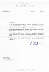 近日,法国国家教育部长雅克·朗先生(Jack LANG)致函居住在法国格勒诺布尔市(Grenoble)的赤坚一家法轮功学员,对他们历经在中国的迫害之后终于恢复正常生活表示极其宽慰,并非常希望赵明的情况得到最好的解决。