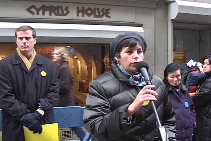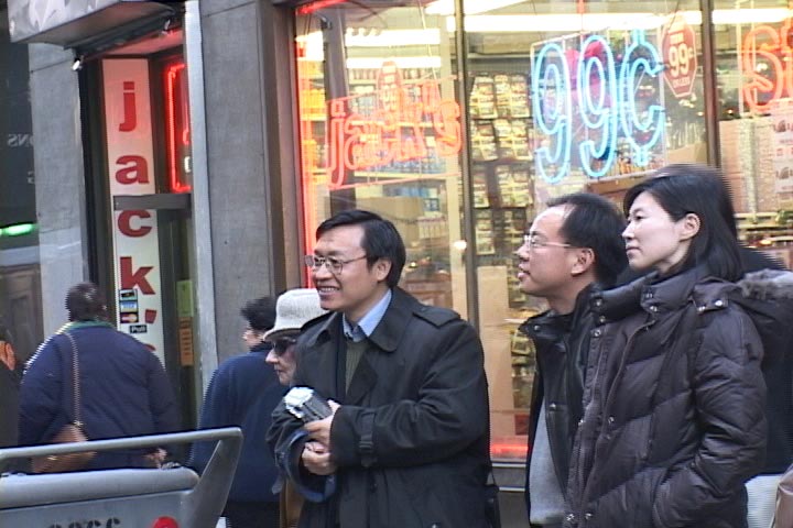 | 侨报楼前 | 一位西方学员讲话 | 坚信 |