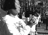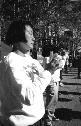 另一位妇女,吴秋霞(音译),现在是康尼(Coney)岛的居民,她曾因为修炼她的信仰而在中国被捕,她说法轮功使她身心受益。她在被非法关押期间也受到野蛮的虐待。她的父母试图探视她,但被(官方)拒绝了。