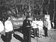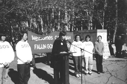 这四名妇女,朱颖,李智丽,杨东东和刘静芝计划在中国领事馆结束新闻发布会后,向联合国秘书长柯菲.安南递交加拿大人和美国人收集的数百份(注:应为10万份)签名,呼吁立即制止中共当局对法轮功修炼者犯下的野蛮暴行。