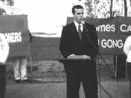 “法轮大法好”,李简短地说,“我想呼吁世界上所有政府和所有善良人们提供支持,帮助制止中国对法轮功修炼者的迫害”。
