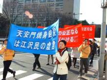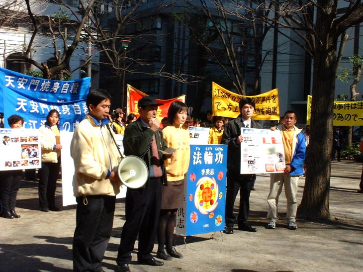 之后,鉴于大陆媒体层层升级的对法轮功的谩骂,20多名日本东京学员于2月5日上午到中国驻日使馆静立抗议,呼吁公众的理解和支持。又有三家电视台,一家电视公司及几家报社记者到场,朝日电视台于中午新闻节目播放了采访法轮功学员的镜头及大使馆前的和平抗议。