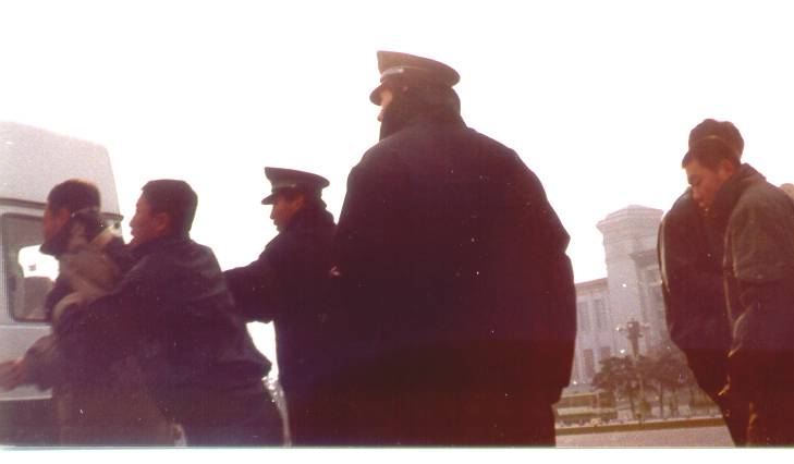 天安门图片:和平请愿的法轮功学员遭到警察逮捕和殴打