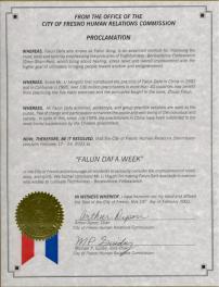 加利福尼亚州福雷司诺市宣布法轮大法周