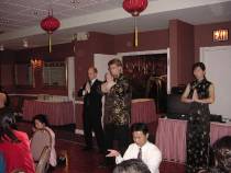 两位晚宴的主持人在致词中对”春节“这个中国古老的传统节日作了简短介绍,同时讲述了江氏下令春节期间在全国范围内抓捕法轮功学员,使千万个家庭在这样一个举国同乐的时刻妻离子散。加拿大张昆仑教授被释放就是国际社会与善良民众支持正义反对邪恶的最好例证。纽约地区的法轮大法学员也因当地各级政府给予的支持倍受鼓舞。另外,作为社会中的一份子,作为议员的选民,学员们感到有责任提醒政府官员,他们有可能因为褒奖法轮大法而受到来自驻美中国领馆的骚扰,甚至恐吓。随后,学员们播放了圣迪市(Stantee)市长不受加州中国驻美领馆的干扰,颁发褒奖给当地大法学员的新闻报道。两分钟的新闻立场鲜明,诙谐有趣,引起客人们及学员的阵阵笑声。