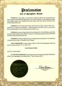 伊利诺伊州首府斯普林费尔得市命名“法轮大法周”