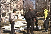 3月8日上午,乘大法学员不在的时候,中国使馆的工作人员把诬蔑大法的展板偷偷放到了天安门花园里。学员发现后,立即向美国警察说明了情况。中国大使馆这种恶意挑衅的做法违反了美国法律。警察出面与大使馆进行交涉,并警告中国大使馆,如果再看到类似举动,要按照违反美国联邦法律处理。
