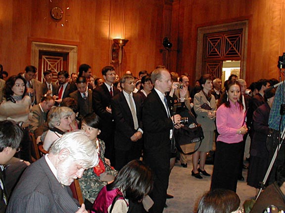 美国参议院外交关系委员会主席赫尔姆斯出席了这个颁奖礼,他一直是中国政府的强烈批评者。