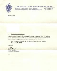 加拿大不列颠哥伦比亚省艾斯昆茂镇褒奖“法轮大法”
