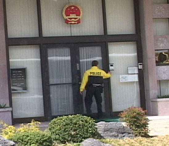 三月二十二日早上十一点,大法弟子安排把一封致钱其琛副总理的和平请愿书递进中国大使馆。当一切就绪,准备出发时,一位管区警察过来并很诚恳的告诉我们说:“请让我先进去探访一下,你们再进去,免得他们把你们抓住扣留,我完全没有办没帮助你们,因为进了他们的大门,就算是进了中国的领土,我是美国警察,看着也没法救你们。”于是我们就在街边等着,连采访的新闻媒体也只好耐心的等候。只见这位警察先生进进出出,一次比一次为难的告诉说“他们坚决不准你们进去。其实我也早已预期是这个结果,因为他们一向如此。我知道你们都是好人,我的朋友还特别关照说要善待大法弟子,因为你们是好人。”堂堂炎黄子孙被本国驻美使馆拒之门外,还得由美国警察介入并保护。中国成了什么样的国家?中国现在是个什么样的政府?中国实在已到了可怜亦可笑的地步了。