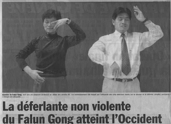 如果说很难准确地搞清法轮功信徒的人数,我们却肯定在目击一场超越中国边界的精神修炼浪潮。在瑞士,人们估计有600多信徒,日内瓦有几个学校教授这一功法。在法国大约有三千多,在40多个西方国家里,有成千上万。法轮功,亚洲特色的“新人类”,以其简单有效吸引着人们。没有人会怀疑在中国,这一来源于佛教的功法会对把人们从中央集权解放出来做出贡献;在西方,这一功法有助于抵制消费社会和新自由主义。