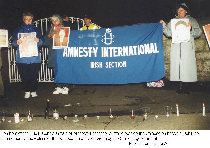 国际特赦组织严重关注有关被拘留的法轮功追随者在中国各地的拘留所被折磨和虐待的报告。赵金华,一位42岁的妇女,1999年10月,在山东省警察拘押中被毒打致死。出现了很多有关法轮功修炼者被监禁、酷刑折磨和被杀害的事实报导。在目前中国的镇压气候下,很难精确地核实这些报告,然而,这些报告包括了充份的资料,足以引起严重关注。根据中国已经批准实施的『联合国反酷刑和其它非人或污辱待遇和惩罚的公约』(UN Convention Against Torture and other Cruel, Inhuman or Degrading Treatment or Punishment),中国有义务调查所有有关酷刑的报告,将那些责任者送交司法审判。对法轮功的镇压是政府当局挑起的,他们似乎未采取任何行动以制止折磨那些被捕的人们。国际特赦组织认为,法轮功修炼者之所以遭到迫害,就是因为他们表达了他们和平的信仰。