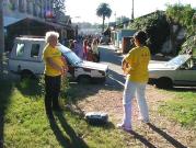 后来我们去一家中餐馆吃饭。一对年轻的中国夫妇和他们的乌拉圭朋友一同走进餐馆。当他们看到我们和我们的法轮大法T恤衫时,不住地惊讶地盯着我们。菜上来后我们开始吃饭,一位同来的中国学员向他们走过去打招呼。这对夫妇是从中国大陆来的。他们非常吃惊能在一个南美洲国家见到法轮功修炼者。那位学员用了一会功夫向他们解释关于法轮功的真相并给了他们一些中文资料。读完资料并看到关于迫害的传单,那中国女子看上去非常不安和震惊。她用手抱着头朝下看着桌子,简直不敢看我们。似乎这对夫妇对在中国到底发生着什么一无所知。我们对带给这位妇女这么多悲伤而感到歉意,但我们也很高兴有机会向各地的中国人讲清大法的真相并在这个问题上触及到他们的心灵。