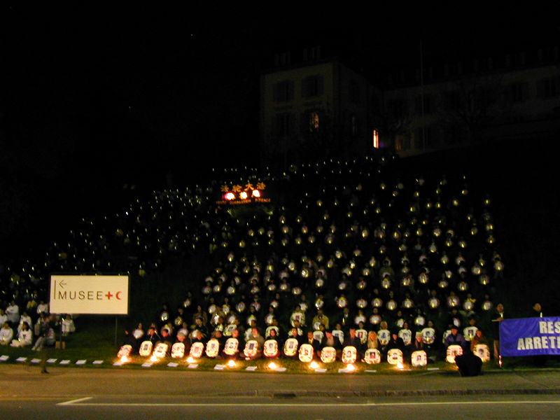 图片报道:日内瓦投票日前的法轮功烛光守夜活动