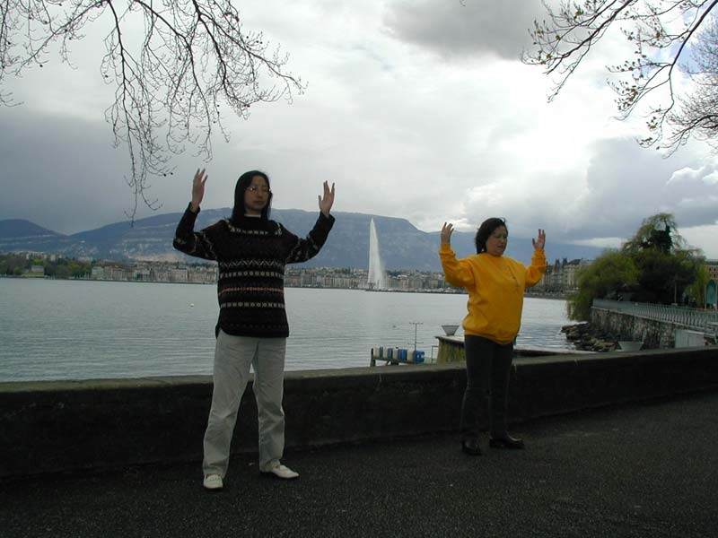 第二天她带上大法资料找到店老板,平静地说,她因有非常重要的事,请他批准她假期。“那怎么行?你刚请过假,你的工作谁代替?”老板说。她平静地问老板:“当您失去了亲人,您该怎么办?”老板很惊讶,同情地问:“你家里亲人去世了?”“不是我的亲人,然而如同我的亲人,我失去了一百八十多位亲人。”于是她就给老板讲江泽民政府将法轮功学员迫害致死的情况,并告诉他,她到日内瓦去,就是要向国际社会呼吁,为死难者伸冤、制止江泽民集团的镇压与迫害。老板十分理解地点点头。当他得知她全家四口都到日内瓦去时,不解地问:“为什么你的丈夫不能代替你去?”“不行,这种事我丈夫绝对代替不了我,我应尽自己的责任。”老板见她如此坚定,便同意了,请她自己和她的同事们商量安排好她的工作,于是她一个个地给同事打电话,讲她去日内瓦的原因及法轮功的真相,同事们都很理解、支持她。两周前他们带着孩子又一次来到日内瓦。