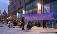 大华府地区法轮功学员在中国大使馆门前举行了烛光悼念活动。从下午5点至晚上9点,五、六十名学员陆续聚集在中国大使馆门前的天安门花园。大家首先集体炼功,虽然春寒料峭、寒风刺人,但是大家依然庄重肃穆。
