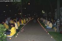 【明慧网2001年4月19日】 4月17日晚近百名洛杉矶法轮大法学员在中领馆前烛光悼念被江泽民犯罪集团迫害致死的大陆学员。