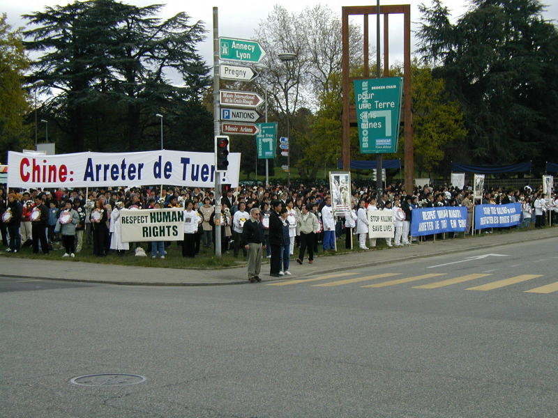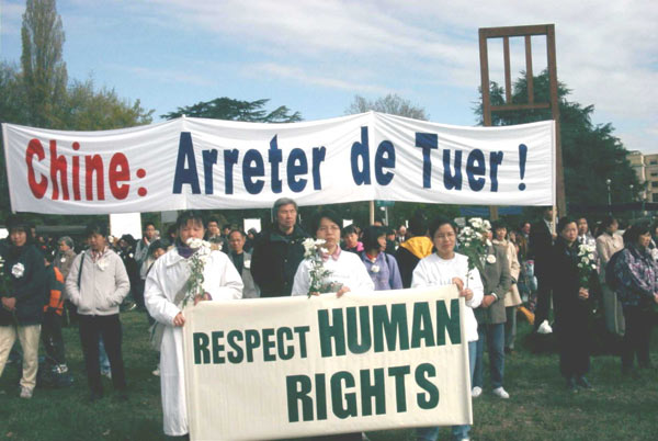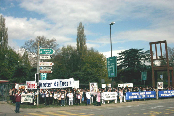 2001年4月18日上午,来自世界20多个国家和地区的800名人士在联合国前的万国广场上静默站立。他们向国际社会呼吁:制止在中国的人权
