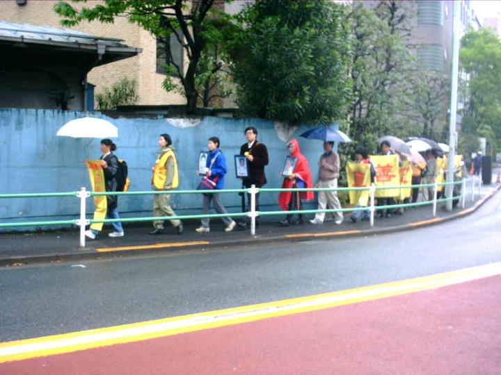 现在,邪恶势力仍作最后的垂死挣扎,还有大量的世人被蒙骗,更需要我们加大力度去向世人讲清真象。今天4月25日,在这一值得纪念日子里,我们在日本的大法弟子,再次集体走出来,向中国驻日大使馆请愿,要求停止迫害法轮功,和平解决法轮功问题。