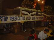 星期二晚上的这次展示是与在全世界许多城市进行的烛光守夜相呼应。他们的目标放在美国提出的议案,该议案表示关注中国在公民及宗教权利上的缺陷。