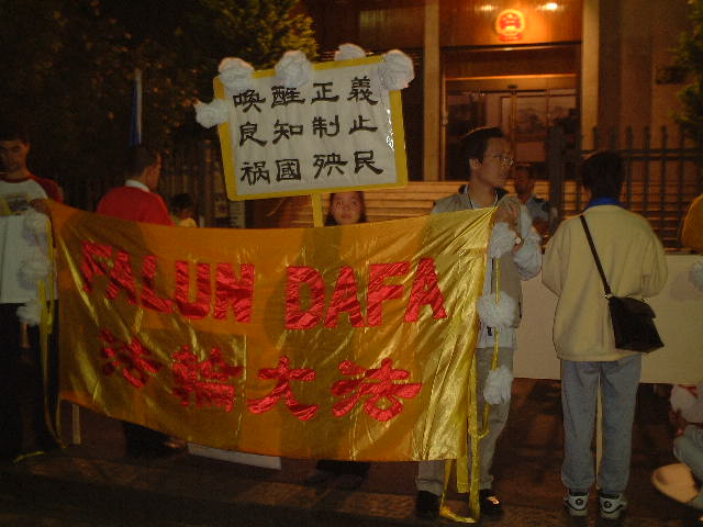在中国驻东京大使馆门外,也发生了类似的抗议,约60名法轮功学员要求中国给他们的团体以基本的法律权利。法轮功在日本有约400名学员,其中大部份是中国人。