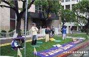 法轮功海外成员在媒体声明中说:“房间里的九名法轮功修炼者在装订传单和其他关于迫害法轮功的资料时,大约三、四十名警察打碎门锁,破门而入。”