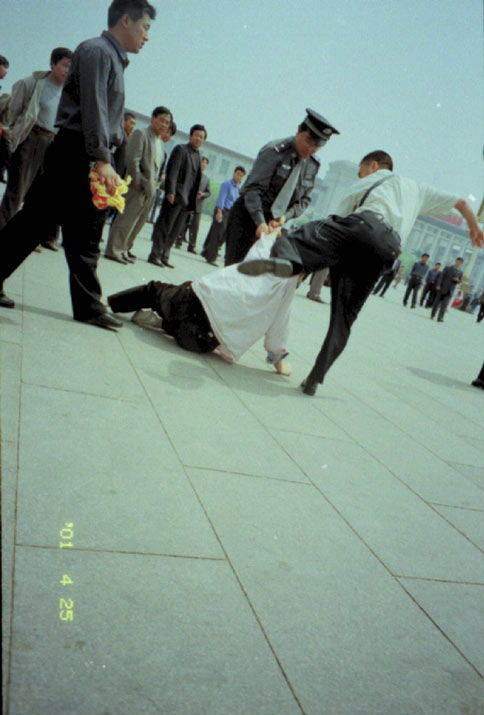 图片报导:2001年4月25日天安门广场警察抓捕大法弟子