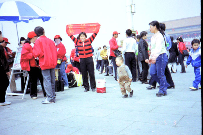 2001年"五·一"那天,天安门广场游人甚多,人群中不时有人高声喊出"法轮大法好","法轮大法是正法!"的正义之声,便衣和警察似乎一时乱了阵脚,无从下手。大法弟子们都安全返回。