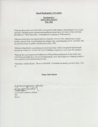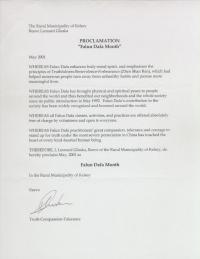 加拿大马尼托巴省弗兰克林镇宣布2001年5月为"法轮大法月"。