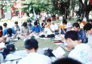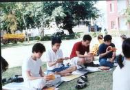 98年9月23日,我看了师父在新加坡法会上讲法解法的录像后,我感到时间对我很紧迫,心里很着急,老师的大法这么好,我一个字不认识,怎么办呢?有一天到练功点去的路上,有个学员对我说:婆婆,你要学会读书认字,你家里又没什么事情,叫爹爹先教你读经文,一有空就读,把最近的几篇经文读熟了,再学《转法轮》。
