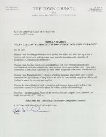 加拿大纽芬兰省泊池柯夫镇宣布“法轮大法真善忍日”