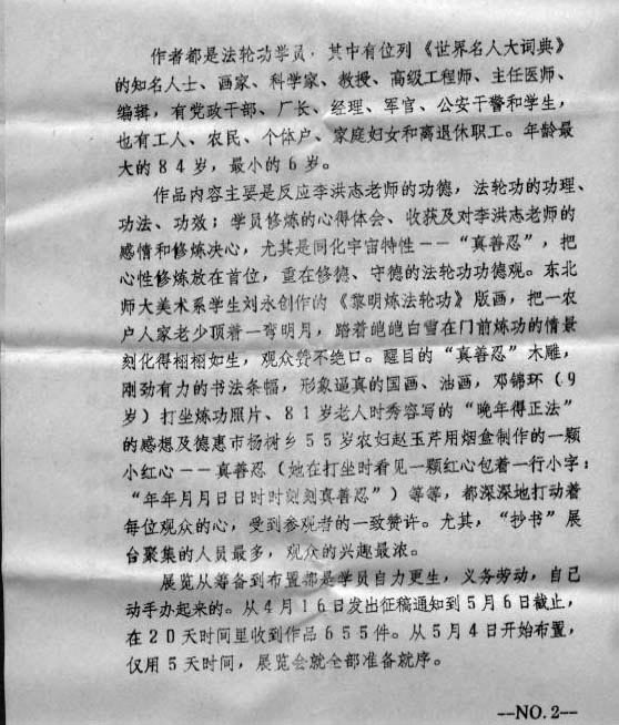 ●若想阅读各地贺信、活动报导,以及访问明慧网为庆祝法轮大法洪传九周年暨世界法轮大法日特别推出的两部图片展——正法之路图片展(包含作品百余幅)和大陆学员书画作品展(包含作品数十幅),请访问明慧“世界法轮大法日”网站:http://package.minghui.org/WFLDFD。