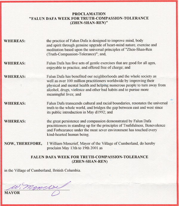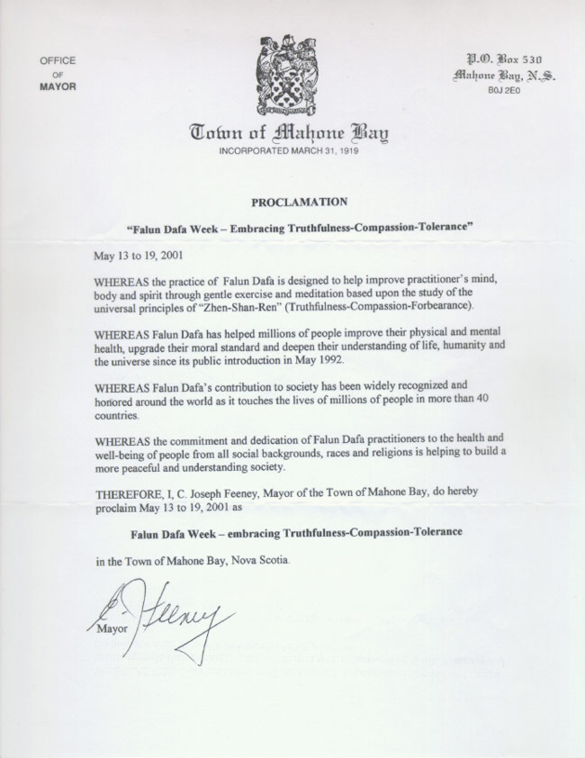 【明慧网2001年5月13日】为了庆祝法轮大法洪传九周年,加拿大法轮大法学会将五月十三日至五月二十一日定为首届“加拿大法轮大法节 (Canada Falun Dafa Festival)”。届时,加拿大各大城市将举行各种各样的庆祝及声援国内弟子的活动。一如既往,所有法轮功活动免费向公众开放。