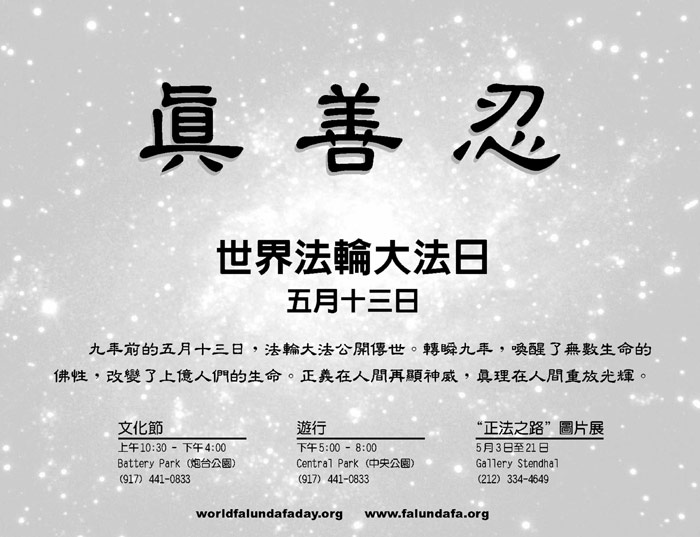 恭贺五月十三日——大法洪传九周年暨世界法轮大法日