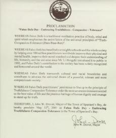 【明慧网2001年5月17日】加拿大纽芬兰省斯伯尼亚德湾镇宣布2001年5月13日为“法轮大法真善忍日”。