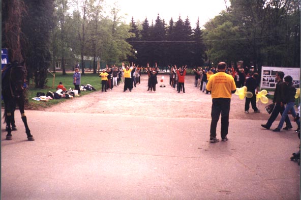 印尼五百众同庆世界法轮大法日,炼功场上显现法轮光晕