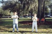 小哥俩一起炼功
