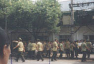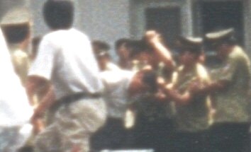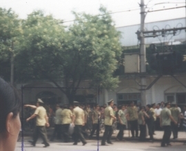 吉林省长春市朝阳沟二大队被非法关押的大法弟子李民与另三名功友,在4月30日有300人的"揭批会"上,主动制止邪恶,站出来阻止,有效的制窒了邪恶,但遭到了管教的十分残忍的毒打。据知情者说,李民头部被打变形,面目无法辨认,其它三名功友均遭到了不同程度的毒打,并被拖至会场。所长扬言:谁不转化这就是下场。