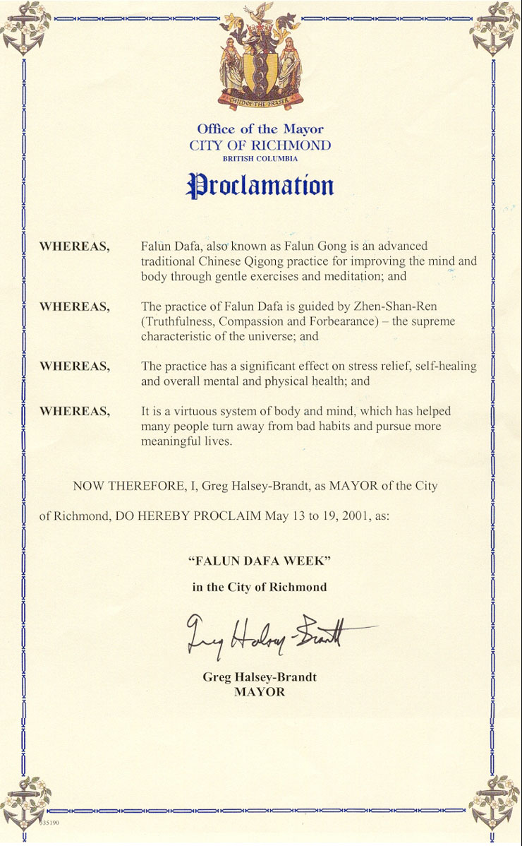 大法弟子:韩庆广 李凤山 李香芹 秦宝琴 秦付臣 张俊英 封金堂 张春爱 谷香荣 晏凤兰 李巧良 田明娥 申俊栋 张俊霞 郭卫旗 申俊双 韩文昌 秦景志 郭秀芝 韩玉秀 袁清和 孙好修 聂瑞雪 王福兴 聂玉玺 安成莲 樊秀兰 李金菊 赵连凤 白玲志 辛玉珠 辛保合 田香莲 曲继光 李金海 敬秀英 袁文朝 张银凤 于会珍 赵书香 张志国 赵秀娥 杨亚辉 杨亚兰 宋红亮 王建芬 辛香莲 李连凤 晏明香 张夕花 徐书巧 晏智慧 晏爱芳 张美芳 秦文娥 武金章 武学章 晏书海 李书风 韩荣香 秦丽萍 韩燕燕 白九香 张凤美 阎好友 张学明 马金凤 王书珍 刘学兰 杨香芝 马俊凯 张如秀 李连女 张景香 李延亮 李延寿 张如林 袁玉珍 张凤兰 李德显 张淑贤 张凤云 赵运河 高香爱 平新 宠东升 王凤珍 张海斌 秦景香 杨金玲 张巧芹 张夕堂 张清朝 张清太 张巧云 张桂花 张夕春 李金芳 李红云 张金花 2001年4月