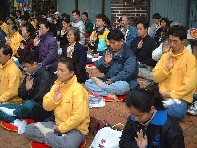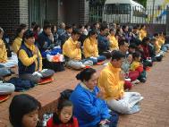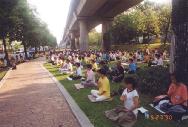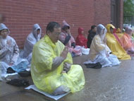 这一活动在五月二十六号下午达到了高潮。数十名来自芝加哥及附近城市的大法弟子在黑云压城,风雨交加的环境中,凝神端坐,单手立掌,发出最纯正的正念:“法正乾坤,邪恶全灭”!大法弟子的正气似滚滚的浪潮,荡涤着三界内邪恶的一切因素。别说是下雨,就是下雹子、下刀子我们也雷打不动。
