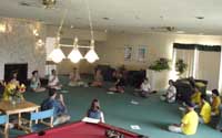 学员读完洪吟和几篇《精進要旨》中的经文后,简单地自我介绍。其中竟有一大部分是得法不到半年的新学员。我们深深地感受到大法的威德,在法正人间的此刻,有越来越多有缘人走进大法中。有一位学员说:「我得法虽然才三个月,但是,我心里觉得,我好像搭上末班车了」。另二位二个多月前才得法的学员表示:「我觉得我和大法相见恨晚,要是早一点得法多好」。我们觉得,这次来的新学员,和以往有些不同,心性都很高。从报到时的种种表现,真的是让人感觉到台湾大法学员越来越成熟了。