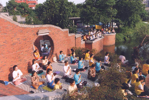 五点五分一到,大家睁开了眼睛,原本黑暗的夜空早已天清体透、大放光明!一千多位大法弟子没有喧哗,没有吵闹,又静静地分为两处,一处在剑潭活动中心的大湖边,一处在剑潭捷运站旁炼动功和静功,五点五十分、六点五十分到的时候,所有大法弟子又再一次地盘腿结印,窒息邪恶!在全世界一亿多个大法弟子的正念之下,苟延残喘的邪恶势力显得更加不堪一击,大法弟子的强大正念,震撼着寰宇世界,感动了天上人间!一位在场地周围负责摄影的大法弟子,此时更是被如此祥和宁静之场震撼得泪水涟涟。