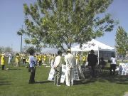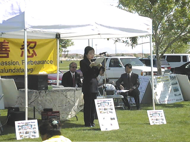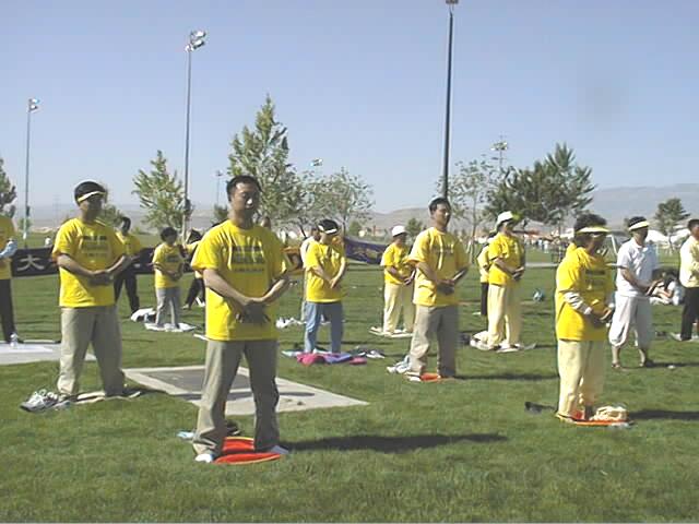 大约八十名来自美国西部地区的大法弟子参加了这次活动。四月的拉斯维加斯阳光灿烂,万里无云。学员们在炎热的阳光下静静地演示了五套功法。曾遭受江泽民集团迫害的大法弟子山姆(SAM)及维妮莎(VENNESSA)先后发言揭露江泽民集团迫害法轮功的罪恶行径。出席会议的西方人为法轮功学员的悲惨遭遇流下了眼泪。记者们采访了当地学员及在中国大陆遭受迫害的学员。