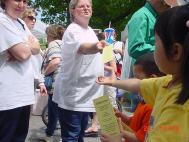 三天的活动,游客络绎不绝。随着洪法的深入,许多游客表示曾在报纸或电视上看到了有关大法的报道,对中国政府的残酷迫害表示不可理解和不满。不少人表示一直在关注着有关法轮大法的报道,还有些游客主动提出签名,要求中国政府停止对法轮功学员的迫害。
